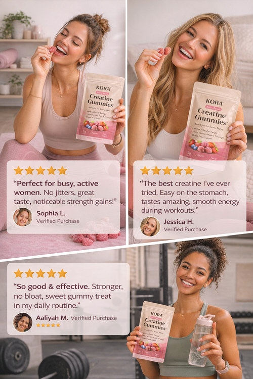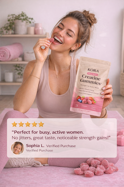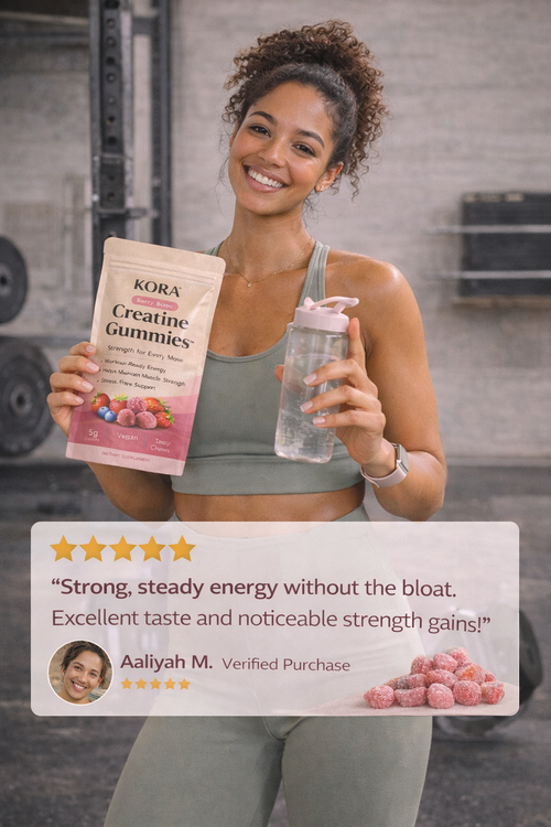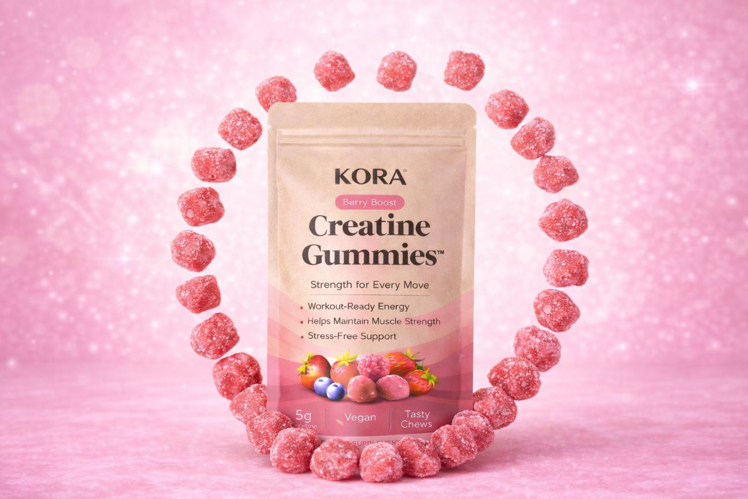 They are a convenient creatine supplement designed to support strength, performance, and daily energy—without the hassle of powders or capsules/KORA Berry Boost Creatine Gummies™ are a convenient, great-tasting creatine supplement designed to support strength, performance, and everyday energy—without the hassle of powders or capsules.